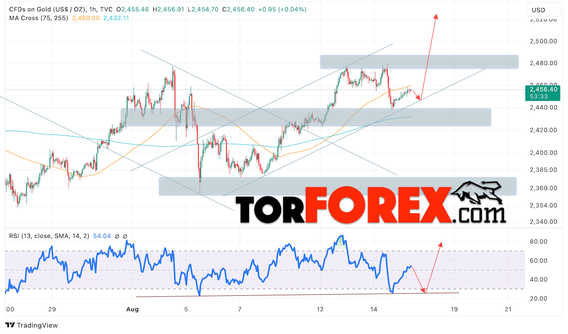 Цена Золота прогноз XAU/USD на 16 августа 2024