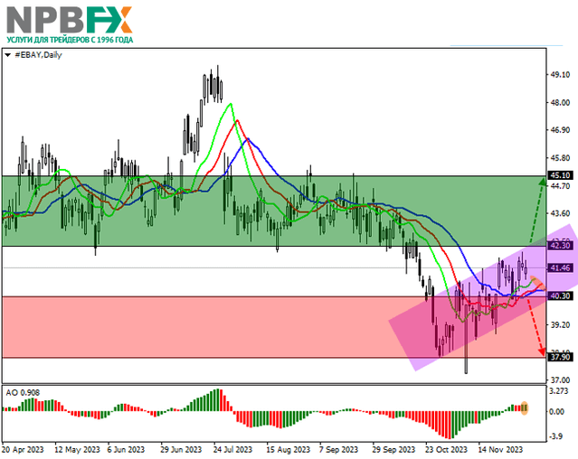 Акции eBay Inc., американской интернет-ретейлинговой компании, корректируются на уровне 41.00.