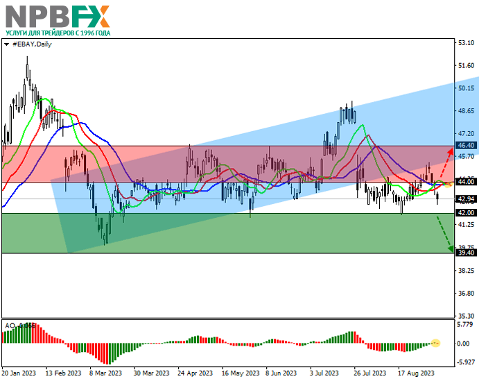 Акции eBay Inc., американской интернет-ритейлинговой компании, корректируются на уровне 43.00.