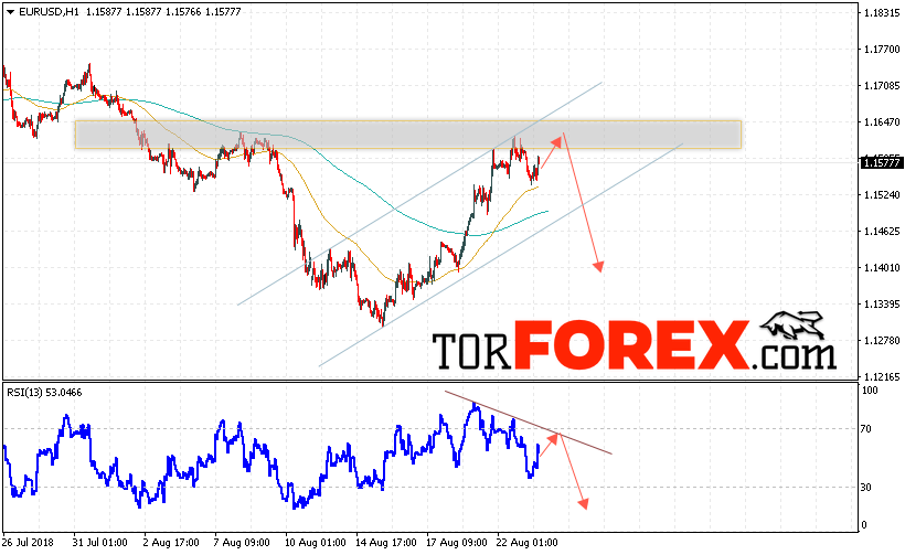 Таким образом, EUR/USD прогноз Евро Доллар на 24 августа 2018 предполагает попытку теста области сопротивления вблизи уровня 1.1635, откуда стоит ожидать отскок и попытку продолжения падения пары в область ниже уровня 1.1405, в пользу снижения выступит тест линии тренда на индикаторе относительной силы, отменой варианта падения EUR/USD станет сильный рост и пробой уровня 1.1685, что укажет на пробой области сопротивления и продолжение роста пары в область выше уровня 1.1780.