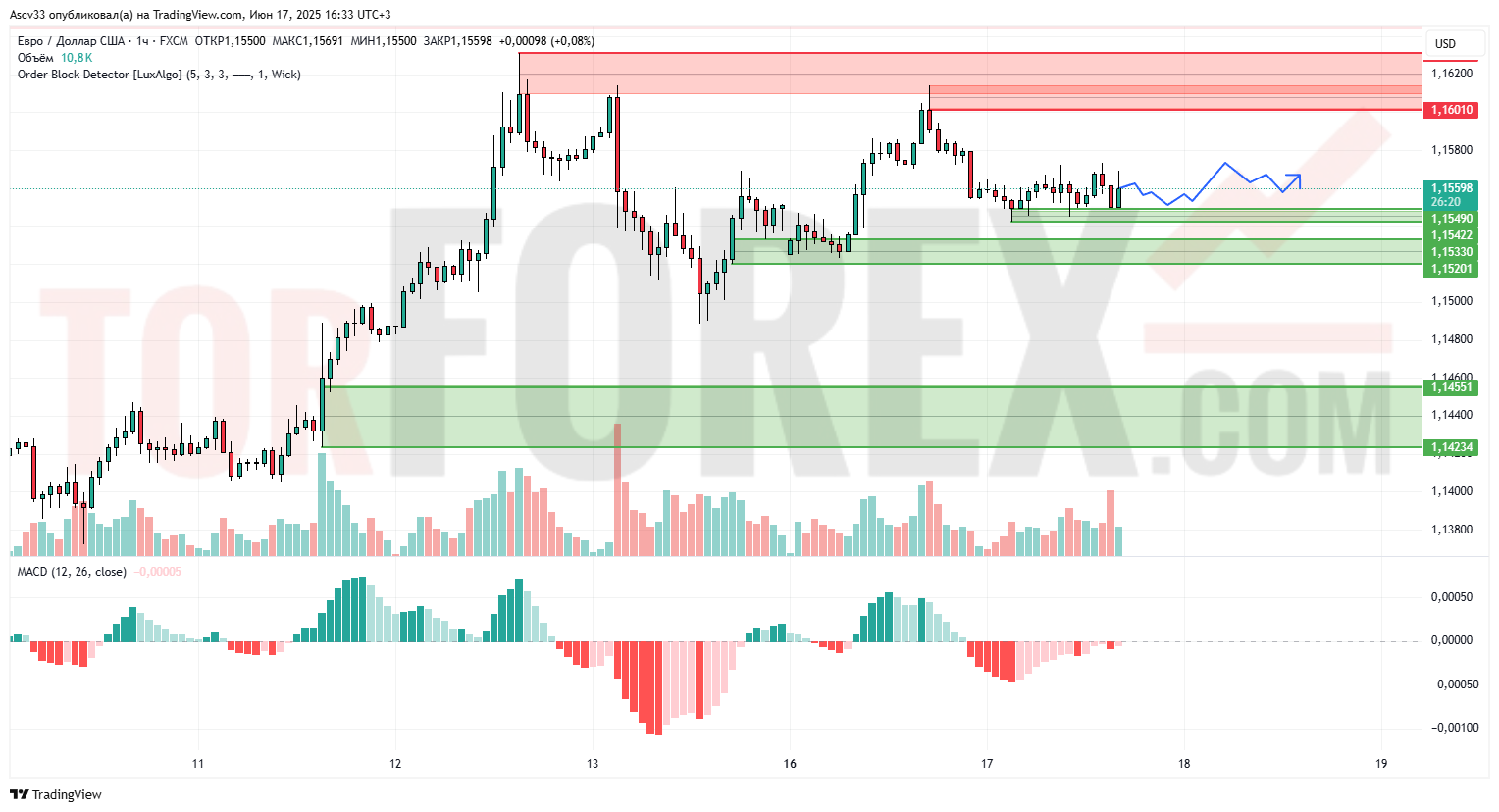 1,15420–1,15201 — ближайшая зона спроса, которая удерживает цену от дальнейшего снижения.