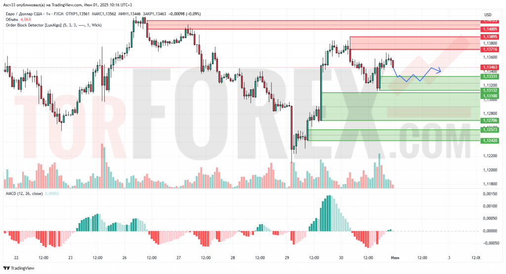 Ожидается движение в боковом диапазоне 1,1310–1,1370. При пробое выше 1,1370 цена может направиться к 1,1400. В случае отката и пробоя ниже 1,1310 пара может протестировать 1,1270. Приоритет — нейтральный сценарий с уклоном к краткосрочной консолидации.