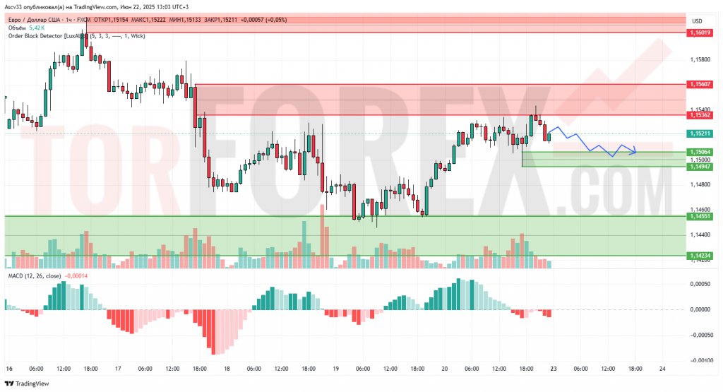 Пара может протестировать зону 1.1500–1.1494, и при пробое неё вероятно снижение в направлении 1.1455. Краткосрочно преобладают медвежьи сигналы, и коррекционное движение вниз остаётся приоритетным сценарием.