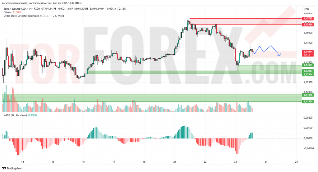 Сценарий развития с высокой вероятностью — консолидация в зоне 1.1400–1.1450 с риском возобновления снижения при отказе от роста. В случае пробоя ниже 1.1337 пара может направиться к 1.1300.