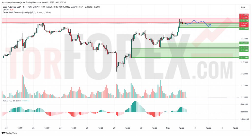 - 1,14170–1,14394 – ключевая зона предложения, возможны откаты.