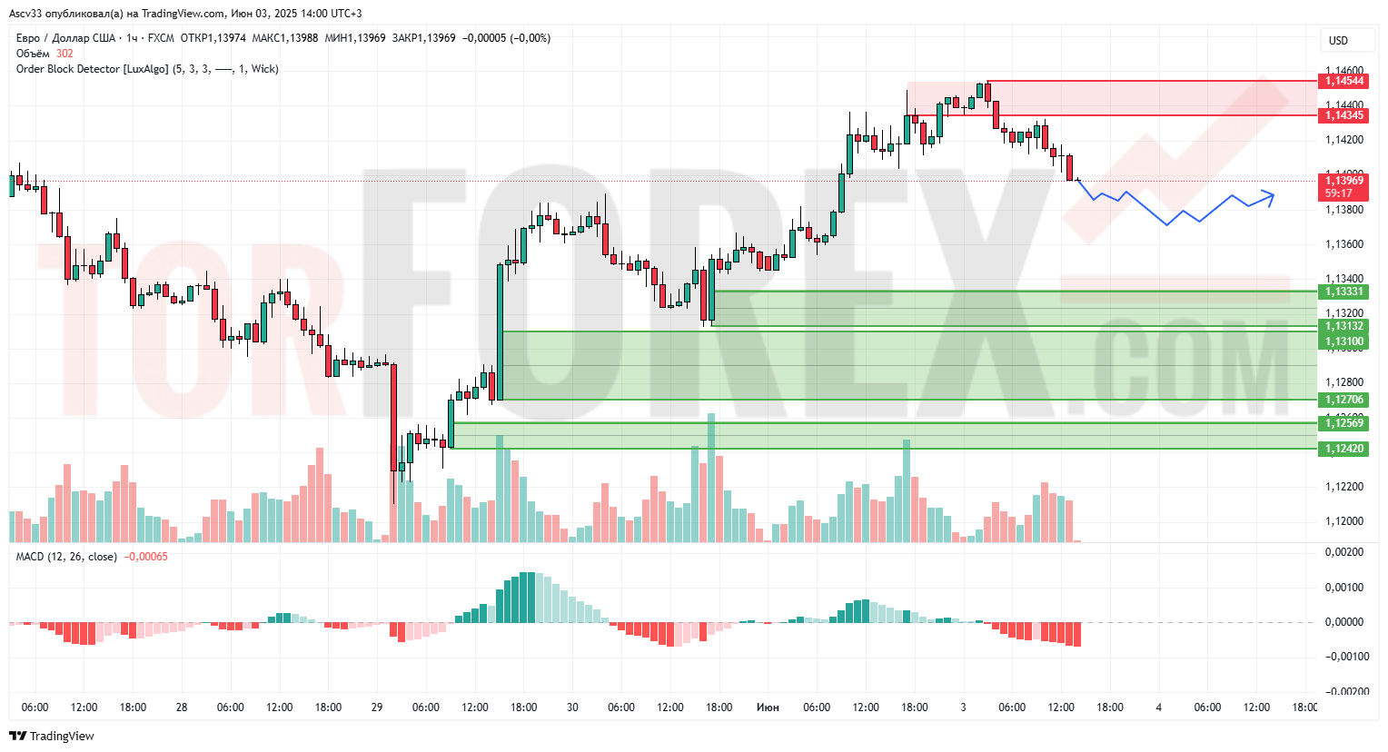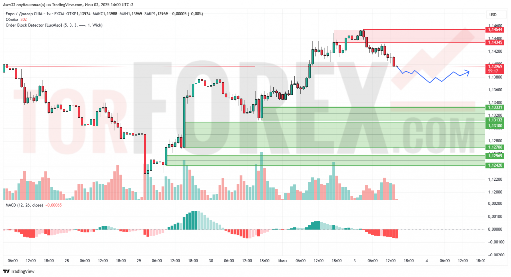 1.14345–1.14544 — верхняя граница текущей волны роста; здесь ранее фиксировалась активность продавцов