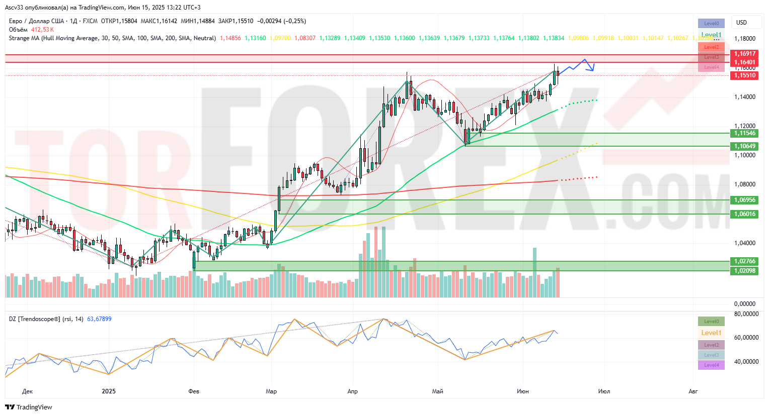 Прогноз Евро Доллар EUR/USD на неделю 16 — 22 июня 2025