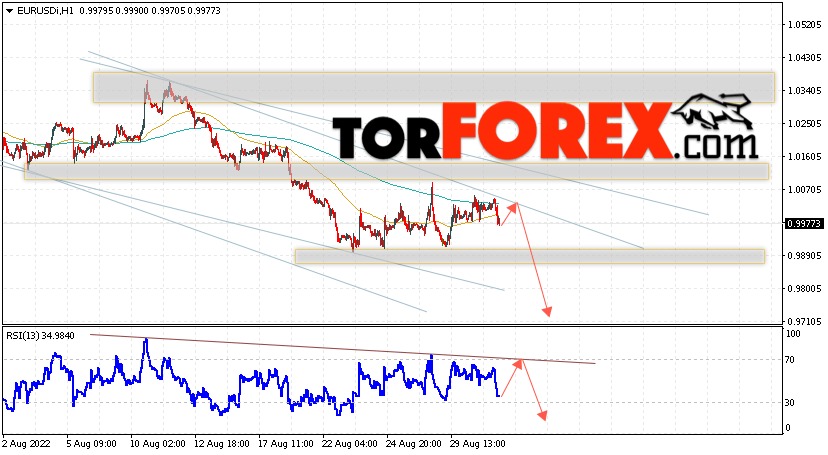 Таким образом, EUR/USD прогноз Евро Доллар на 1 сентября 2022 предполагает попытку развития коррекции и тест области сопротивления вблизи уровня 1.0025. Откуда стоит рассматривать отскок цены вниз и попытку продолжения падения валютной пары на рынке в область ниже уровня 0.9715. В пользу снижения инструмента на рынке Форекс выступит тест нисходящей линии тренда на индикаторе относительной силы (RSI). Отменой варианта падения пары EUR/USD станет сильный рост котировок и пробой уровня 1.0165. Это укажет на пробой области сопротивления и продолжение подъёма валютной пары на Форекс в область выше уровня 1.0285.