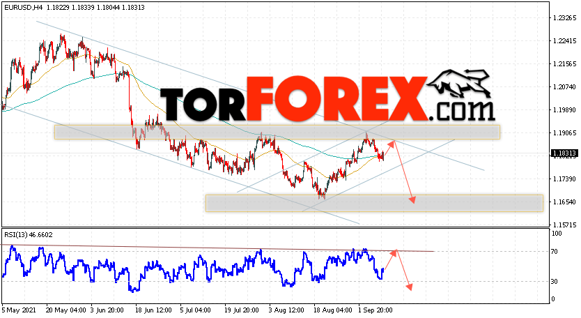 Таким образом, EUR/USD прогноз Евро Доллар на 10 сентября 2021 предполагает развитие коррекции и тест области сопротивления вблизи уровня 1.1855. Откуда стоит ожидать отскок и попытку падения падения пары в область ниже уровня 1.1655. В пользу снижения валютной пары выступит тест линии тренда на индикаторе относительной силы. Отменой варианта падения пары EUR/USD станет сильный рост котировок и пробой уровня 1.1975. Это укажет на пробой области сопротивления и продолжение подъёма валютной пары на Форекс в область выше уровня 1.2265.