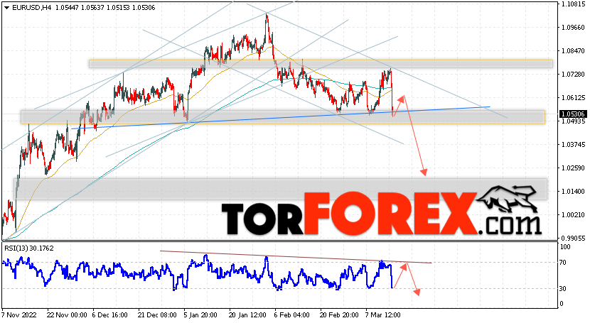 Таким образом, EUR/USD прогноз Евро Доллар на 16 марта 2023 предполагает попытку развития коррекции пары и тест области сопротивления вблизи уровня 1.0615. Откуда стоит рассматривать отскок цены вниз и попытку продолжения падения валютной пары на рынке в область ниже уровня 1.0245. В пользу снижения инструмента на рынке Форекс выступит тест линии тренда на индикаторе относительной силы (RSI). Отменой варианта падения пары EUR/USD станет сильный рост котировок и пробой уровня 1.0865. Это укажет на пробой области сопротивления и продолжение подъёма валютной пары на Форекс в область выше уровня 1.1275.