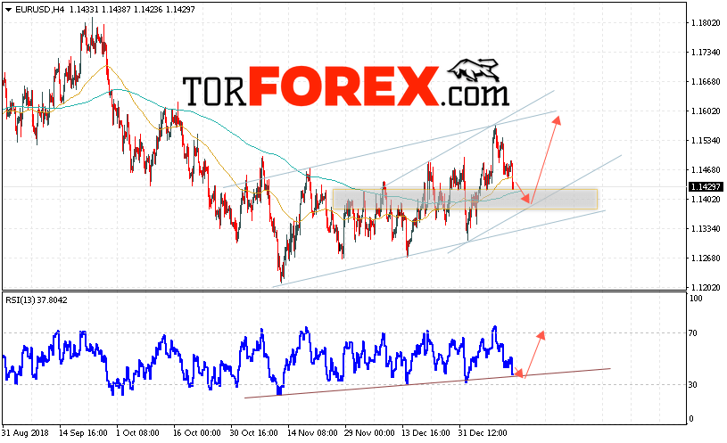 Таким образом, EUR/USD прогноз Евро Доллар на 16 января 2019 предполагает попытку теста области поддержки вблизи уровня 1.1405. Откуда стоит ожидать отскок и попытку продолжения роста пары в область выше уровня 1.1595. В пользу роста валютной пары выступит тест восходящей линии на индикаторе относительной силы. Отменой варианта роста EUR/USD станет падение и пробой уровня 1.1355. Это укажет на пробой нижней границы канала и продолжение падения пары в область ниже уровня 1.1245.