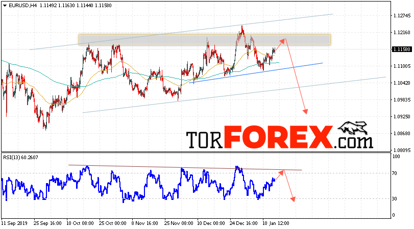 Таким образом, EUR/USD прогноз Евро Доллар на 17 января 2020 предполагает развитие коррекции и тест области сопротивления вблизи уровня 1.1180. Откуда стоит ожидать отскок и попытку продолжения падения пары в область ниже уровня 1.0960. В пользу снижения валютной пары выступит тест линии тренда на индикаторе относительной силы. Отменой варианта падения EUR/USD станет сильный рост и пробой уровня 1.1265. Это укажет на пробой сопротивления и продолжение роста пары в область выше уровня 1.1465.
