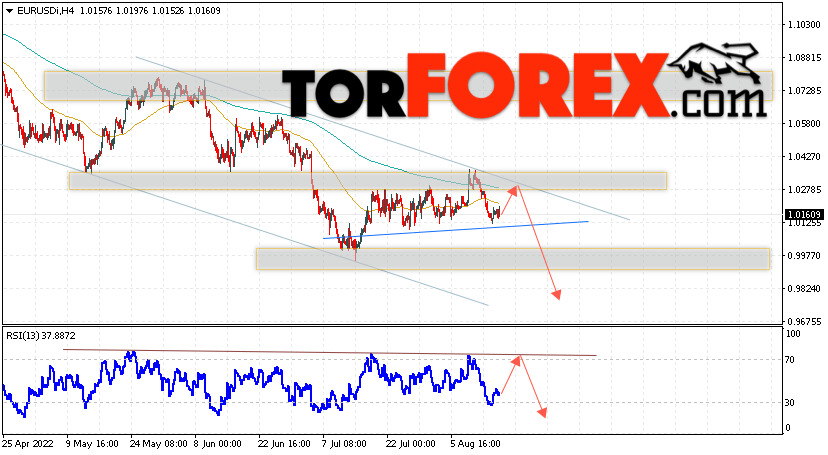Таким образом, EUR/USD прогноз Евро Доллар на 18 августа 2022 предполагает попытку развития бычьей коррекции и тест области сопротивления вблизи уровня 1.0275. Откуда стоит рассматривать отскок цены вниз и попытку продолжения падения валютной пары на рынке в область ниже уровня 0.9835. В пользу снижения инструмента на рынке Форекс выступит тест нисходящей линии тренда на индикаторе относительной силы (RSI). Отменой варианта падения пары EUR/USD станет сильный рост котировок и пробой уровня 1.0465. Это укажет на пробой области сопротивления и продолжение подъёма валютной пары на Форекс в область выше уровня 1.0675.