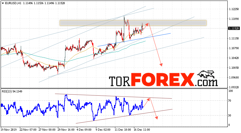 Таким образом, EUR/USD прогноз Евро Доллар на 18 декабря 2019 предполагает развитие коррекции и тест области сопротивления вблизи уровня 1.1165. Откуда стоит ожидать отскок и попытку продолжения падения пары в область ниже уровня 1.1005. В пользу падения валютной пары выступит тест линии тренда на индикаторе относительной силы. Отменой варианта снижения EUR/USD станет сильный рост и пробой уровня 1.1225. Это укажет на пробой сопротивления и продолжение роста пары в область выше уровня 1.1305.
