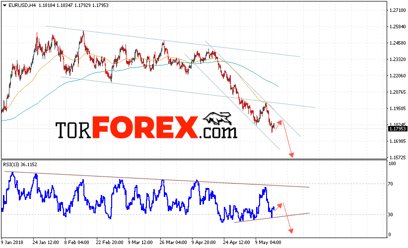 Таким образом, EUR/USD прогноз Евро Доллар на 18 мая 2018 предполагает попытку теста верхней границы нисходящего канала вблизи уровня 1.1835, откуда стоит ожидать отскок и попытку продолжения падения пары в область ниже уровня 1.1575, отменой варианта падения EUR/USD станет пробой уровня 1.1865, что укажет на продолжение роста пары в область выше уровня 1.2050.