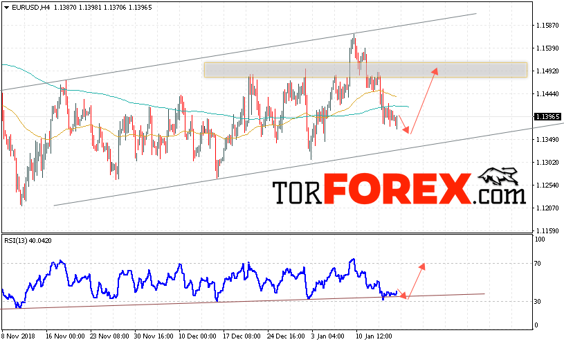 Таким образом, EUR/USD прогноз Евро Доллар на 18 января 2019 предполагает попытку теста области поддержки вблизи уровня 1.1365. Откуда стоит ожидать отскок и попытку продолжения роста пары в область выше уровня 1.1495. В пользу подъёма валютной пары выступит тест линии тренда на индикаторе относительной силы. Отменой варианта роста EUR/USD станет падение и пробой уровня 1.1300. Это укажет на пробой нижней границы канала и продолжение падения пары в область ниже уровня 1.1205.