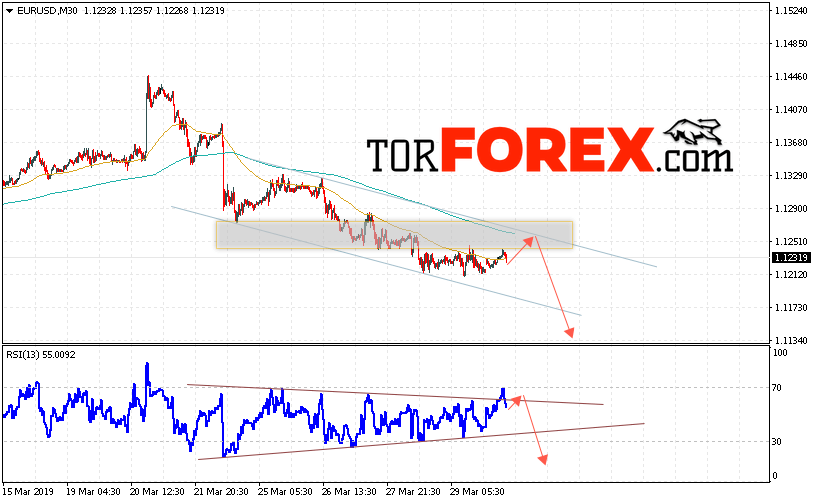 Таким образом, EUR/USD прогноз Евро Доллар на 2 апреля 2019 предполагает попытку теста области сопротивления вблизи уровня 1.1255. Откуда стоит ожидать отскок и попытку продолжения роста пары в область ниже уровня 1.1135. В пользу падения валютной пары выступит тест области сопротивления на индикаторе относительной силы. Отменой варианта снижения EUR/USD станет сильный рост и пробой уровня 1.1305. Это укажет на пробой области сопротивления и продолжение роста пары в область выше уровня 1.1405.