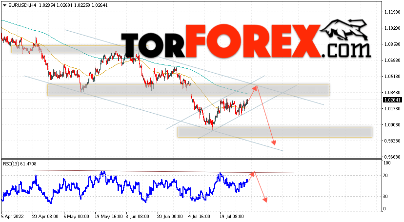 Таким образом, EUR/USD прогноз Евро Доллар на 2 августа 2022 предполагает попытку развития бычьей коррекции и тест области сопротивления вблизи уровня 1.0365. Откуда стоит рассматривать отскок цены вниз и попытку продолжения падения валютной пары на рынке в область ниже уровня 0.9835. В пользу снижения инструмента на рынке Форекс выступит тест нисходящей линии тренда на индикаторе относительной силы (RSI). Отменой варианта падения пары EUR/USD станет сильный рост котировок и пробой уровня 1.0535. Это укажет на пробой области сопротивления и продолжение подъёма валютной пары на Форекс в область выше уровня 1.0855.