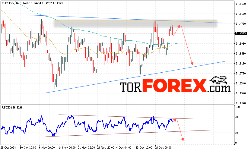 Таким образом, EUR/USD прогноз Евро Доллар на 2 января 2019 предполагает попытку теста области сопротивления вблизи уровня 1.1470. Откуда стоит ожидать отскок и попытку продолжения падения пары в область ниже уровня 1.1315. В пользу снижения выступит тест линии тренда на индикаторе относительной силы. Отменой варианта падения EUR/USD станет сильный рост и пробой уровня 1.1515. Это укажет на пробой сопротивления и продолжение роста пары в область выше уровня 1.1585.