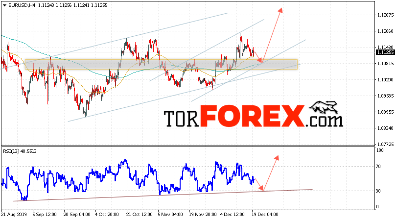 Таким образом, EUR/USD прогноз Евро Доллар на 20 декабря 2019 предполагает развитие коррекции и тест области поддержки вблизи уровня 1.1085. Откуда стоит ожидать отскок и попытку продолжения роста пары в область выше уровня 1.1265. В пользу подъёма валютной пары выступит тест линии тренда на индикаторе относительной силы. Отменой варианта роста EUR/USD станет падение и пробой уровня 1.1015. Это укажет на пробой сопротивления и продолжение снижения пары в область ниже уровня 1.0895.