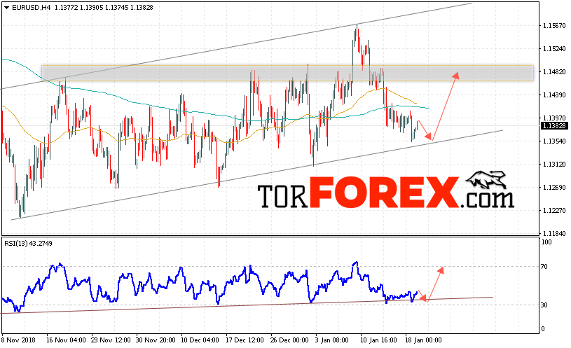 Таким образом, EUR/USD прогноз Евро Доллар на 22 января 2019 предполагает попытку теста области поддержки вблизи уровня 1.1355. Откуда стоит ожидать отскок и попытку продолжения роста пары в область выше уровня 1.1485. В пользу подъёма валютной пары выступит тест линии тренда на индикаторе относительной силы. Отменой варианта роста EUR/USD станет падение и пробой уровня 1.1300. Это укажет на пробой нижней границы канала и продолжение падения пары в область ниже уровня 1.1205.