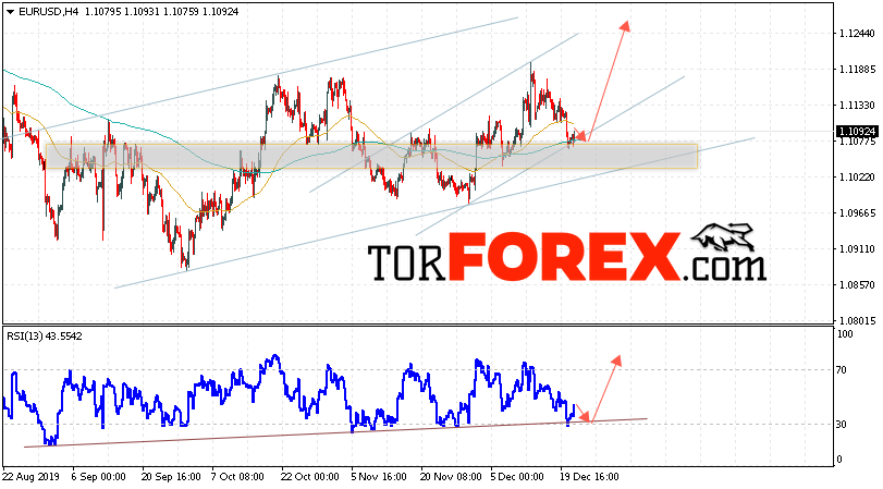 Таким образом, EUR/USD прогноз Евро Доллар на 24 декабря 2019 предполагает развитие коррекции и тест области поддержки вблизи уровня 1.1085. Откуда стоит ожидать отскок и попытку продолжения роста пары в область выше уровня 1.1255. В пользу подъёма валютной пары выступит тест линии тренда на индикаторе относительной силы. Отменой варианта роста EUR/USD станет падение и пробой уровня 1.1005. Это укажет на пробой сопротивления и продолжение снижения пары в область ниже уровня 1.0885.