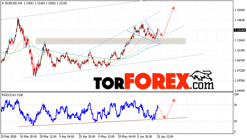 Таким образом, EUR/USD прогноз Евро Доллар на 24 июня 2020 предполагает развитие коррекции и тест области поддержки вблизи уровня 1.1215. Откуда стоит ожидать отскок и попытку продолжения роста пары в область выше уровня 1.1625. В пользу подъёма валютной пары выступит тест линии тренда на индикаторе относительной силы. Отменой варианта роста EUR/USD станет падение и пробой уровня 1.1105. Это укажет на пробой поддержки и продолжение падения валютной пары на Форекс в область ниже уровня 1.0815.