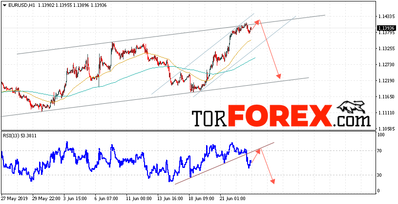 Таким образом, EUR/USD прогноз Евро Доллар на 26 июня 2019 предполагает попытку теста области сопротивления вблизи уровня 1.1405. Откуда стоит ожидать отскок и попытку продолжения снижения пары в область ниже уровня 1.1215. В пользу снижения валютной пары выступит тест линии сопротивления на индикаторе относительной силы. Отменой варианта снижения EUR/USD станет сильный рост и пробой уровня 1.1485. Это укажет на пробой области сопротивления и продолжение роста пары в область выше уровня 1.1615.