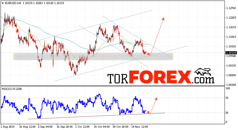 Таким образом, EUR/USD прогноз Евро Доллар на 27 ноября 2019 предполагает развитие коррекции и тест области поддержки вблизи уровня 1.0995. Откуда стоит ожидать отскок и попытку продолжения роста пары в область выше уровня 1.1225. В пользу подъёма валютной пары выступит тест линии тренда на индикаторе относительной силы. Отменой варианта роста EUR/USD станет падение и пробой уровня 1.0945. Это укажет на пробой поддержки и продолжение падения пары в область ниже уровня 1.0805.