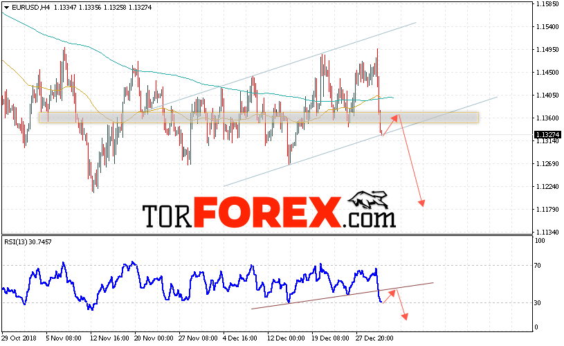 Таким образом, EUR/USD прогноз Евро Доллар на 3 января 2019 предполагает попытку теста области сопротивления вблизи уровня 1.1365. Откуда стоит ожидать отскок и попытку продолжения падения пары в область ниже уровня 1.1185. В пользу снижения выступит тест линии тренда на индикаторе относительной силы. Отменой варианта падения EUR/USD станет сильный рост и пробой уровня 1.1515. Это укажет на пробой сопротивления и продолжение роста пары в область выше уровня 1.1585.