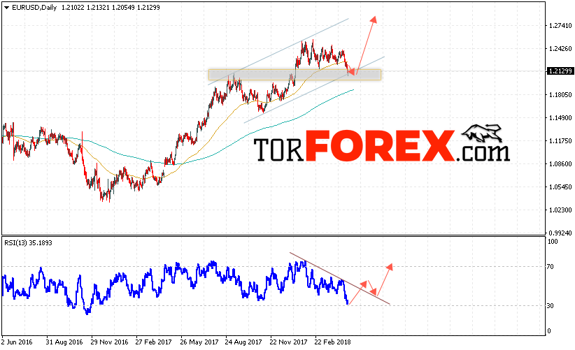 Таким образом, EUR/USD прогноз Евро Доллар на 30 апреля — 4 мая 2018 предполагает попытку падения в область поддержки вблизи уровня 1.2100, откуда стоит ожидать продолжения роста в область выше 1.2750, в пользу роста вступит пробой линии тренда на индикаторе относительной силы, отменой варианта роста евро доллар станет падение и пробой уровня 1.1950, в этом случае стоит ожидать продолжения снижения пары с потенциальной целью на уровне 1.1550.