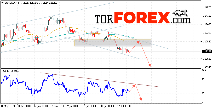 Таким образом, EUR/USD прогноз Евро Доллар на 30 июля 2019 предполагает попытку теста области сопротивления вблизи уровня 1.1195. Откуда стоит ожидать отскок и попытку продолжения снижения пары в область ниже уровня 1.0095. В пользу снижения валютной пары выступит тест нисходящей линии тренда на индикаторе относительной силы. Отменой варианта снижения EUR/USD станет сильный рост и пробой уровня 1.1235. Это укажет на пробой области сопротивления и продолжение роста пары в область выше уровня 1.1345.