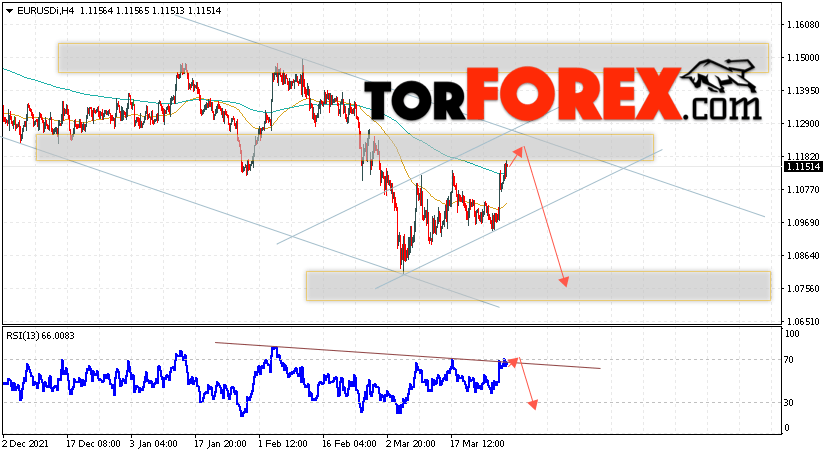 Таким образом, EUR/USD прогноз Евро Доллар на 31 марта 2022 предполагает попытку продолжения развития бычьей коррекции и тест области сопротивления вблизи уровня 1.1185. Откуда стоит рассматривать отскок цены вниз и попытку продолжения падения валютной пары на рынке в область ниже уровня 1.0755. В пользу снижения инструмента на рынке Форекс выступит тест нисходящей линии тренда на индикаторе относительной силы (RSI). Отменой варианта падения пары EUR/USD станет сильный рост котировок и пробой уровня 1.1335. Это укажет на пробой области сопротивления и продолжение подъёма валютной пары на Форекс в область выше уровня 1.1645.