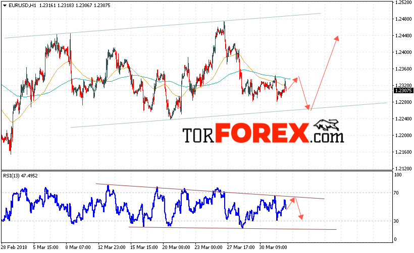 Таким образом, EUR/USD прогноз Евро Доллар на 4 апреля 2018 предполагает попытку теста нижней границы восходящего канала вблизи уровня 1.2270, откуда стоит ожидать отскок и попытку продолжения роста пары в область выше 1.2440, отменой варианта роста EUR/USD станет пробой уровня 1.2230, что укажет на продолжение падения пары в область ниже уровня 1.2150.