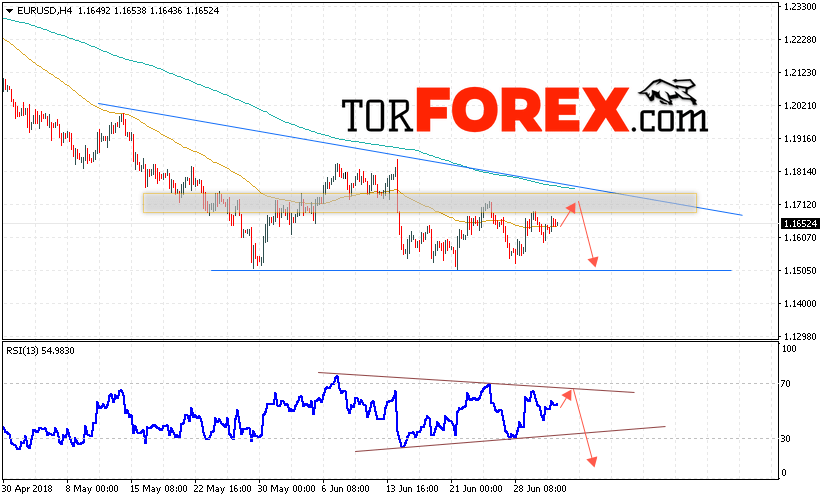 Таким образом, EUR/USD прогноз Евро Доллар на 4 июля 2018 предполагает попытку теста области сопротивления вблизи уровня 1.1720, откуда стоит ожидать отскок и попытку продолжения падения пары в область ниже уровня 1.1505, сильным сигналом в пользу падения выступит тест линии сопротивления на индикаторе относительной силы, отменой варианта падения EUR/USD станет пробой уровня 1.1825, что укажет на продолжение роста пары в область выше уровня 1.1950.