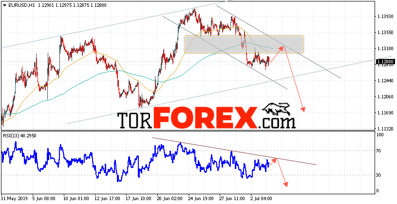 Таким образом, EUR/USD прогноз Евро Доллар на 4 июля 2019 предполагает попытку теста области сопротивления вблизи уровня 1.1320. Откуда стоит ожидать отскок и попытку продолжения снижения пары в область ниже уровня 1.1170. В пользу снижения валютной пары выступит тест линии сопротивления на индикаторе относительной силы. Отменой варианта снижения EUR/USD станет сильный рост и пробой уровня 1.1360. Это укажет на пробой области сопротивления и продолжение роста пары в область выше уровня 1.1455.
