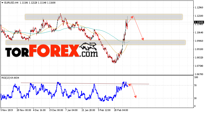 Таким образом, EUR/USD прогноз Евро Доллар на 4 марта 2020 предполагает развитие коррекции и тест области сопротивления вблизи уровня 1.1215. Откуда стоит ожидать отскок и попытку продолжения падения пары в область ниже уровня 1.0985. В пользу снижения валютной пары выступит тест линии тренда на индикаторе относительной силы. Отменой варианта падения EUR/USD станет сильный рост и пробой уровня 1.1315. Это укажет на пробой сопротивления и продолжение роста пары в область выше уровня 1.1465.