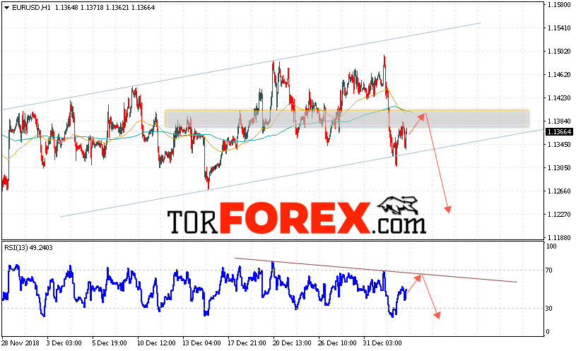 Таким образом, EUR/USD прогноз Евро Доллар на 4 января 2019 предполагает попытку теста области сопротивления вблизи уровня 1.1385. Откуда стоит ожидать отскок и попытку продолжения падения пары в область ниже уровня 1.1225. В пользу снижения выступит тест линии тренда на индикаторе относительной силы. Отменой варианта падения EUR/USD станет сильный рост и пробой уровня 1.1515. Это укажет на пробой сопротивления и продолжение роста пары в область выше уровня 1.1585.