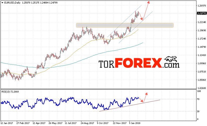 Валютная пара Евро Доллар EUR/USD завершает торговую неделю вблизи области 1.2479. На данный момент стоит ожидать попытку теста падения и теста нижней границы восходящего канала вблизи области 1.2280. Далее продолжение роста пары в область выше уровня 1.2770.