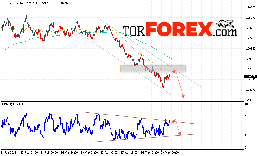 Таким образом, EUR/USD прогноз Евро Доллар на 5 июня 2018 предполагает попытку теста верхней границы нисходящего канала вблизи уровня 1.1770, откуда стоит ожидать отскок и попытку продолжения падения пары в область ниже уровня 1.1350, отменой варианта падения EUR/USD станет пробой уровня 1.1820, что укажет на продолжение роста пары в область выше уровня 1.2050.