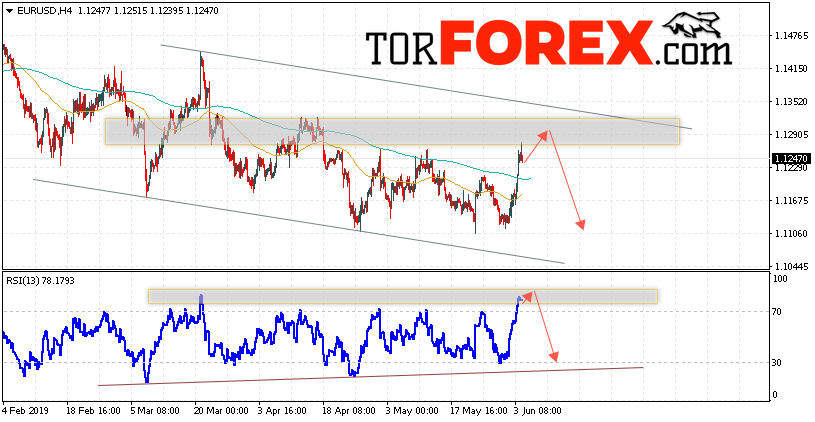 Таким образом, EUR/USD прогноз Евро Доллар на 5 июня 2019 предполагает попытку теста области сопротивления вблизи уровня 1.1285. Откуда стоит ожидать отскок и попытку продолжения падения пары в область ниже уровня 1.1105. В пользу снижения валютной пары выступит тест нисходящей линии сопротивления на индикаторе относительной силы. Отменой варианта снижения EUR/USD станет сильный рост и пробой уровня 1.1355. Это укажет на пробой области сопротивления и продолжение роста пары в область выше уровня 1.1465.