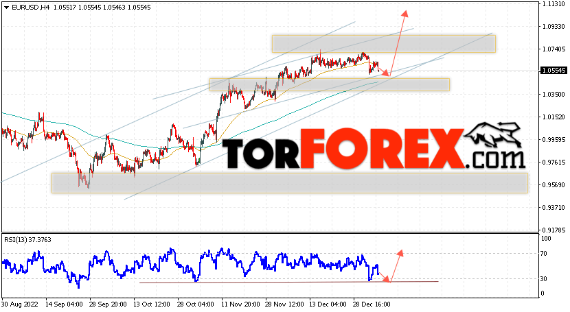 Таким образом, EUR/USD прогноз Евро Доллар на 6 января 2023 предполагает попытку развития незначительной коррекции пары и тест области сопротивления вблизи уровня 1.0555. Откуда стоит рассматривать отскок цены вверх и попытку продолжения роста валютной пары на рынке в область выше уровня 1.1125. В пользу подъёма инструмента на рынке Форекс выступит тест линии тренда на индикаторе относительной силы (RSI). Отменой варианта роста пары EUR/USD станет падение котировок и пробой уровня 1.0345. Это укажет на пробой области поддержки и продолжение падения валютной пары на Форекс в область ниже уровня 1.0165.