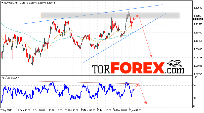 Таким образом, EUR/USD прогноз Евро Доллар на 7 января 2020 предполагает развитие коррекции и тест области сопротивления вблизи уровня 1.1215. Откуда стоит ожидать отскок и попытку продолжения падения пары в область ниже уровня 1.0935. В пользу снижения валютной пары выступит тест линии тренда на индикаторе относительной силы. Отменой варианта падения EUR/USD станет сильный рост и пробой уровня 1.1355. Это укажет на пробой сопротивления и продолжение роста пары в область выше уровня 1.1545.
