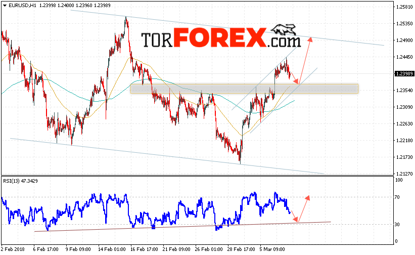 Таким образом, EUR/USD прогноз Евро Доллар на 8 марта 2018 предполагает попытку теста области поддержки вблизи уровня 1.2340, откуда стоит ожидать отскок и попытку продолжения роста пары в область выше 1.2505, отменой варианта роста EUR/USD станет пробой уровня 1.2310, что укажет на продолжение падения пары в область ниже уровня 1.2190.