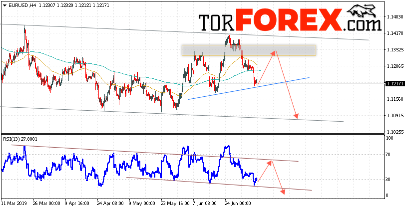 Таким образом, EUR/USD прогноз Евро Доллар на 9 июля 2019 предполагает попытку теста области сопротивления вблизи уровня 1.1345. Откуда стоит ожидать отскок и попытку продолжения снижения пары в область ниже уровня 1.1090. В пользу снижения валютной пары выступит тест нисходящей линии тренда на индикаторе относительной силы. Отменой варианта снижения EUR/USD станет сильный рост и пробой уровня 1.1430. Это укажет на пробой области сопротивления и продолжение роста пары в область выше уровня 1.1525.