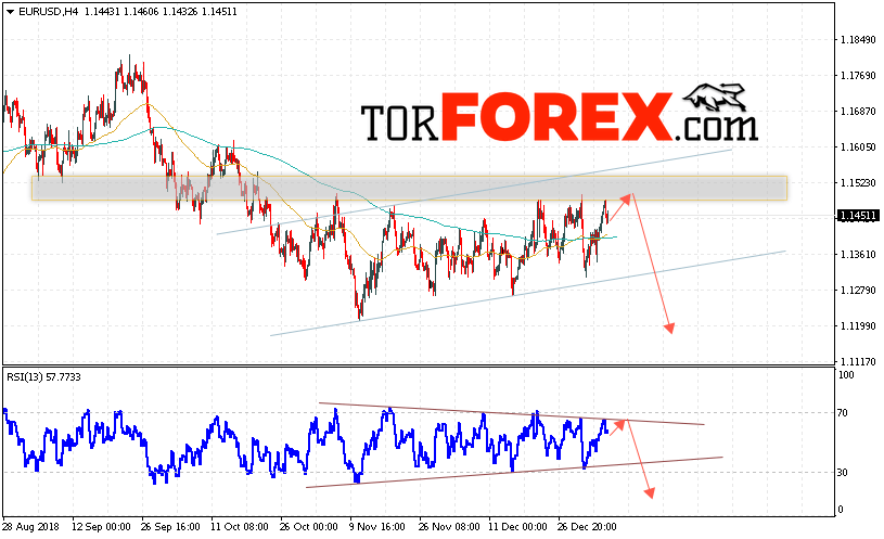 Таким образом, EUR/USD прогноз Евро Доллар на 9 января 2019 предполагает попытку теста области сопротивления вблизи уровня 1.1465. Откуда стоит ожидать отскок и попытку продолжения падения пары в область ниже уровня 1.1200. В пользу снижения выступит тест линии тренда на индикаторе относительной силы. Отменой варианта падения EUR/USD станет сильный рост и пробой уровня 1.1535. Это укажет на пробой сопротивления и продолжение роста пары в область выше уровня 1.1585.