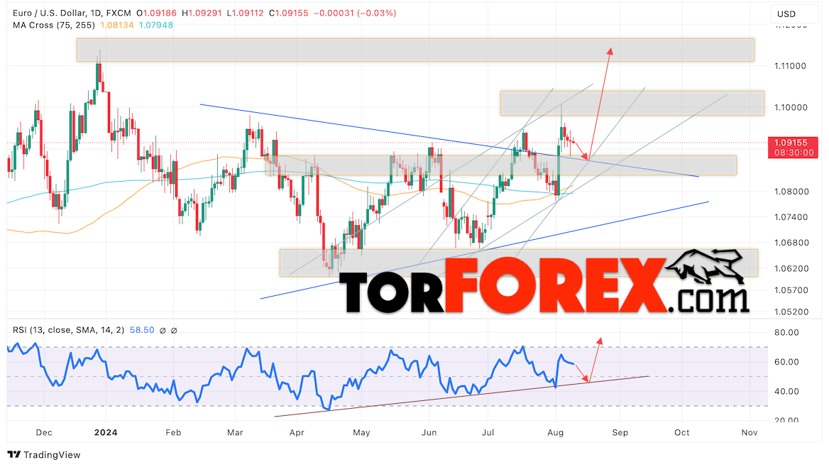 EUR/USD прогноз на неделю 12 — 16 августа 2024