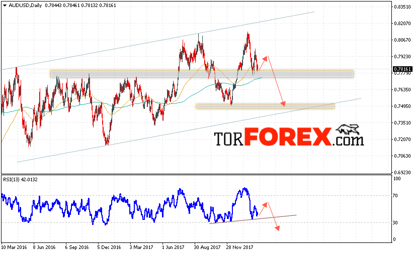 Таким образом, Форекс прогноз AUD/USD на 26 февраля — 2 марта 2018 предполагает попытку теста уровня 0.7940 и начала падения ниже уровня 0.7490, в пользу падения пары выступает формирование разводной модели на индикаторе относительной силы, отменой варианта падения станет пробой области 0.8070, что укажет на пробой уровня сопротивления и продолжение роста пары.