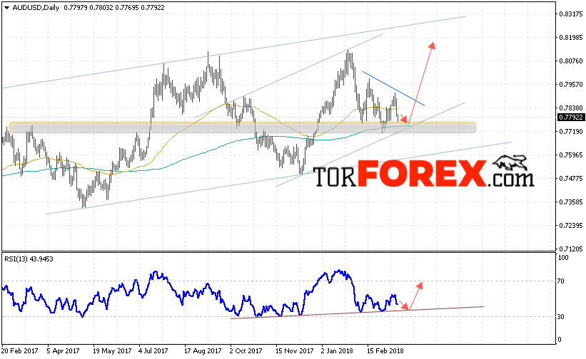 Таким образом, Форекс прогноз AUD/USD на неделю 19 — 23 марта 2018 предполагает попытку теста уровня 0.7750 и продолжение роста выше уровня 0.8170, в пользу роста пары выступит тест линии тренда на индикаторе относительной силы, отменой варианта роста станет пробой области 0.7640, что укажет на пробой уровня поддержи и продолжение падения пары.