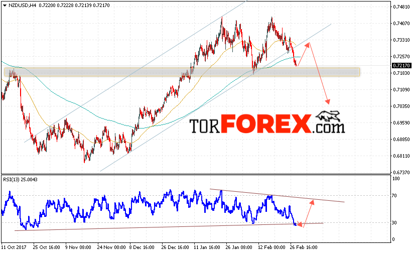 Таким образом, Форекс прогноз и аналитика NZD/USD на 1 марта 2018 предполагает попытку теста нижней границы канала вблизи области 0.7325, откуда стоит ожидать продолжения падения котировок в область ниже уровня 0.7035, дополнительным сигналом в пользу падения выступит тест линии сопротивления на индикаторе относительной силы, отменой варианта падения пары NZD/USD станет сильный рост и пробой уровня 0.7370.